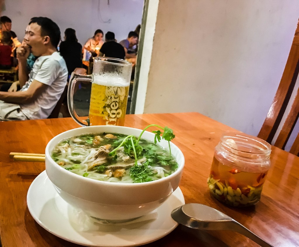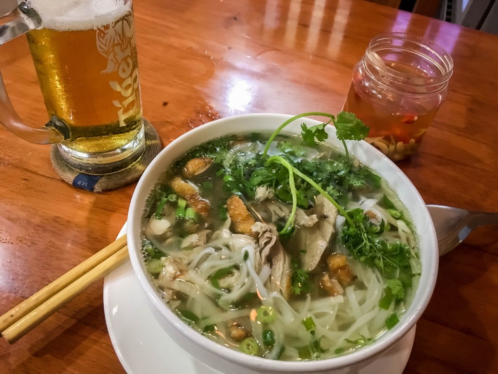 As duck was the pièce de résistance, I went ahead and ordered the duck pho along with a Bia Hanoi beer.  And my goodness, it did not disappoint—it was absolutely magical, one of the richest, most decadent broths I’ve had in my life.  The cold, crisp lager was the perfect complement to the warm, succulent stock, and I couldn’t have been more satisfied with my first pho experience in Vietnam.