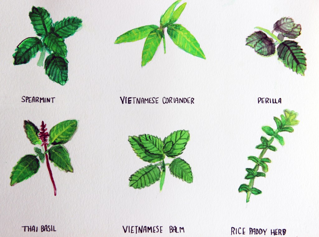 Rudimentary illustration of Vietnamese herbs pour moi.