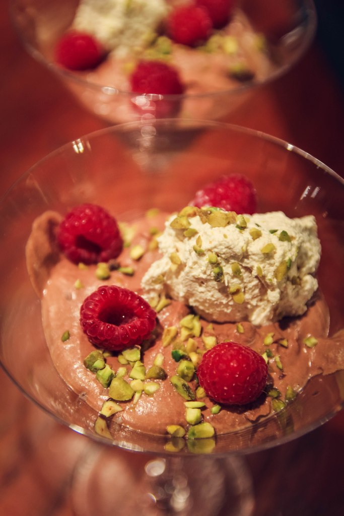 As a chocolate mousse connoisseur, I was thoroughly impressed with this recipe. The consistency is gorgeous, delicate, fluffy, and almost sinfully rich in flavor. The whipped cream helps lighten up the intensity of the dark chocolate as a garnish in addition to giving it a beautiful consistency, with the berries and pistachios serving as another brightening counterpoint to the mousse’s rich complexity.