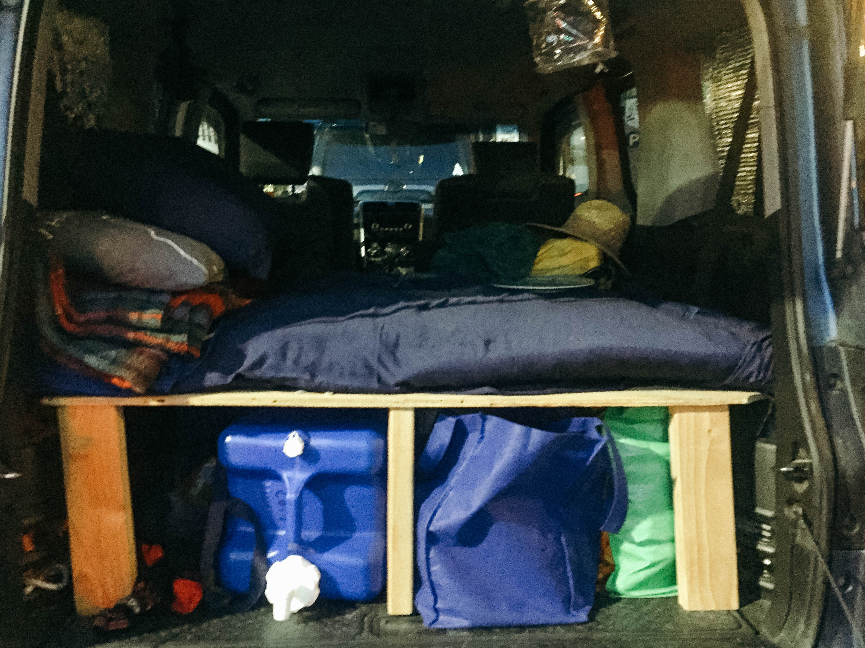Val purchased a used 2012 Honda Pilot last fall. ‘The Fortress’ had about 154,000 miles on it when she purchased it from her trusted longtime mechanic in Seattle. She used to drive a ’95 Toyota Corolla, but knowing that her car was going to serve as her home-base for a decent chunk of the time that she was on the road, her main requirements were to find a vehicle that she’d be able to lie down in and that could comfortably fit all of her stuff.